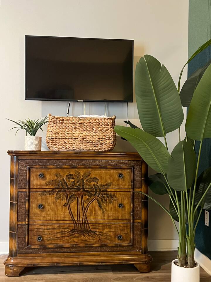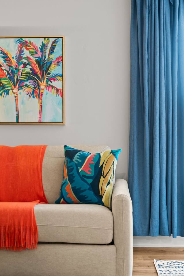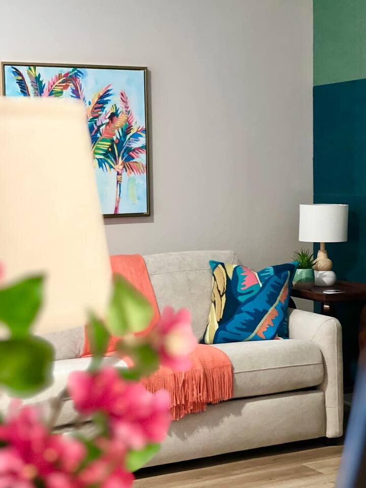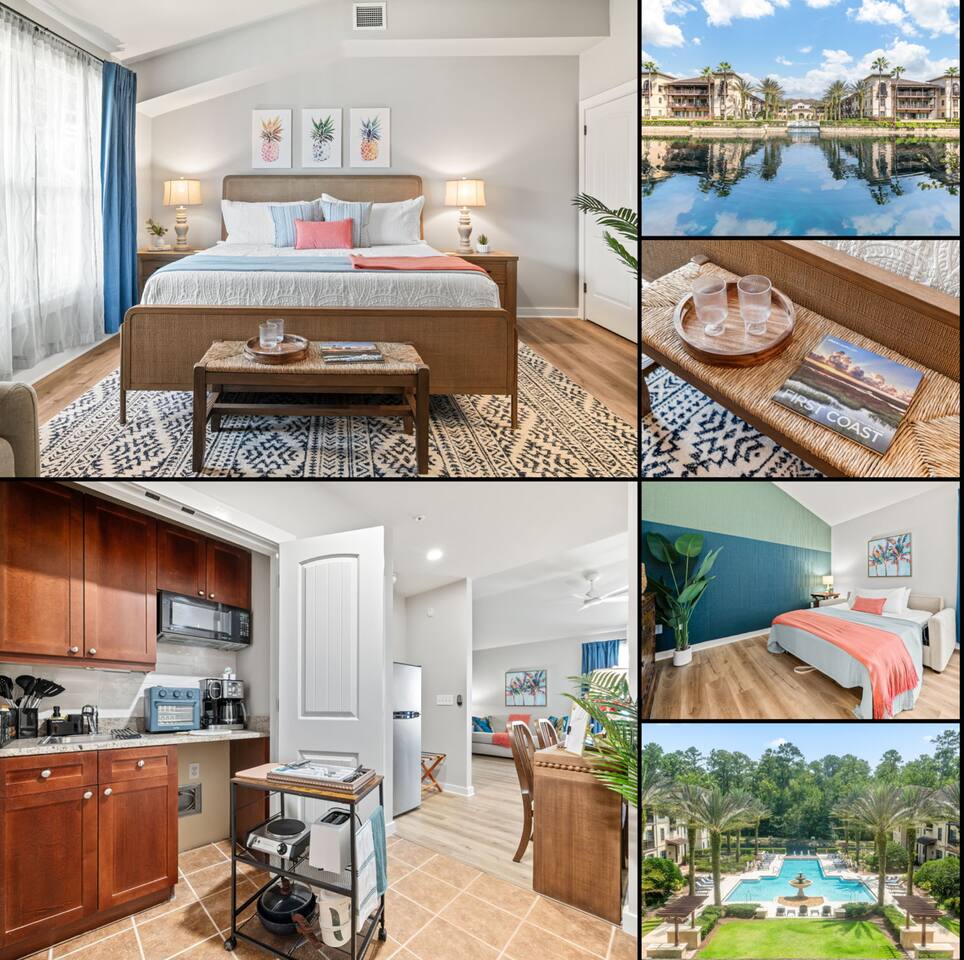 Stay in an immaculate, designer tropical studio within a secure, gated resort community with a 24/7 guard gate. This bright retreat sleeps 4 with a king bed and queen sofa bed (Pack ’n Play available). The open layout includes a fully stocked kitchenette with essentials for easy meals or morning coffee. Natural light and a tropical design create a relaxing vibe, while pool views add to the resort experience. In-Unit Washer/Dryer Combo – perfect for longer stays; travel light and stay fresh. 🏝 Resort Amenities · 3 Sparkling pools (resort-style pool, Olympic & zero-entry) · On-site pickleball courts and nearby King & Bear Golf Course · Clubhouse & tropical walking paths · Pet-friendly community for your four-legged companions · Secure, gated community with 24/7 guard gate 🌆 Location Highlights Just 30 minutes to Historic St. Augustine, where you can explore cobblestone streets, Spanish architecture, vibrant dining, and sandy beaches. The perfect balance of history, relaxation, and adventure. 🌞 Perfect For Ideal for couples, solo travelers, small families or pet-friendly escapes, this studio offers comfort, convenience, and all the perks of a resort stay.