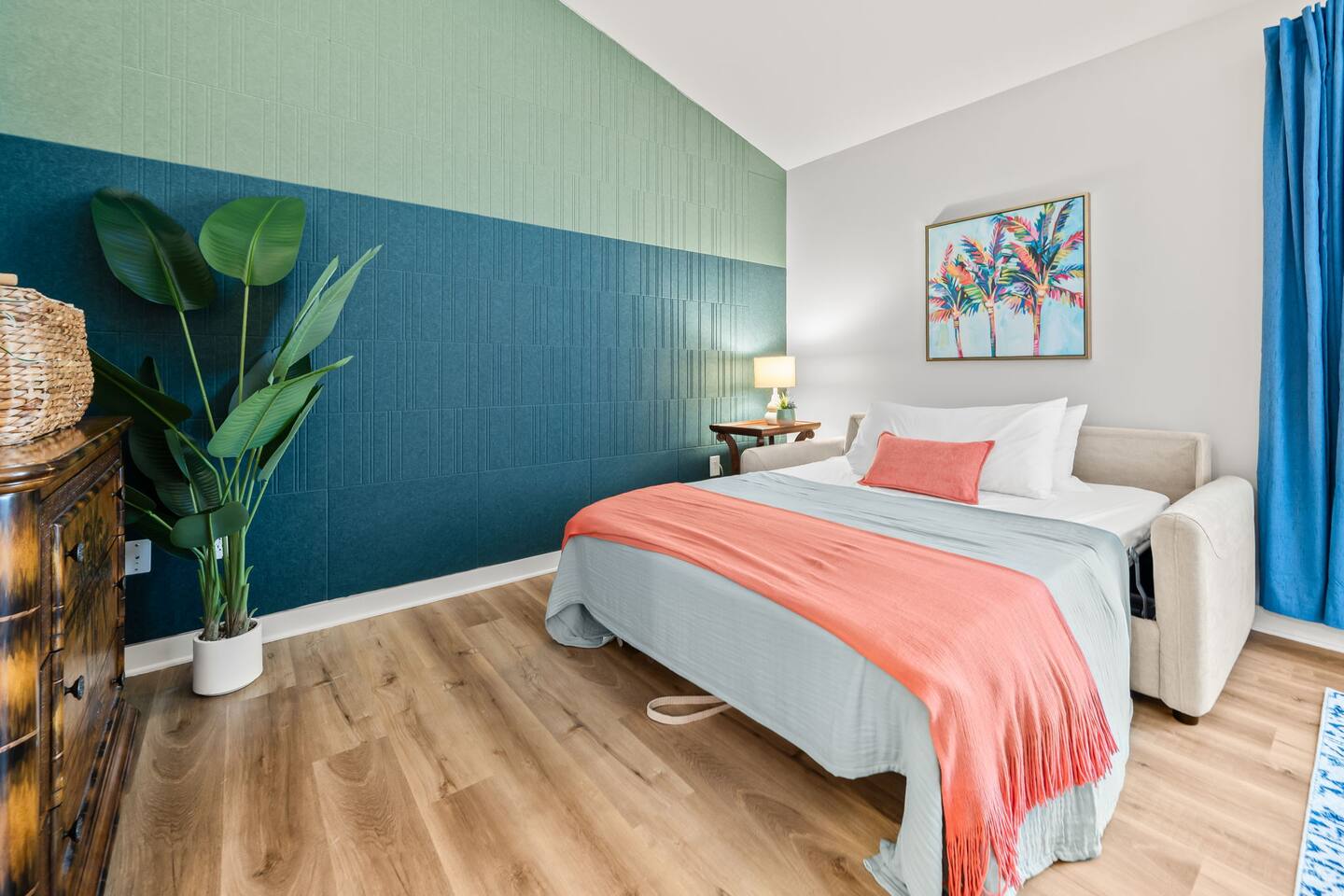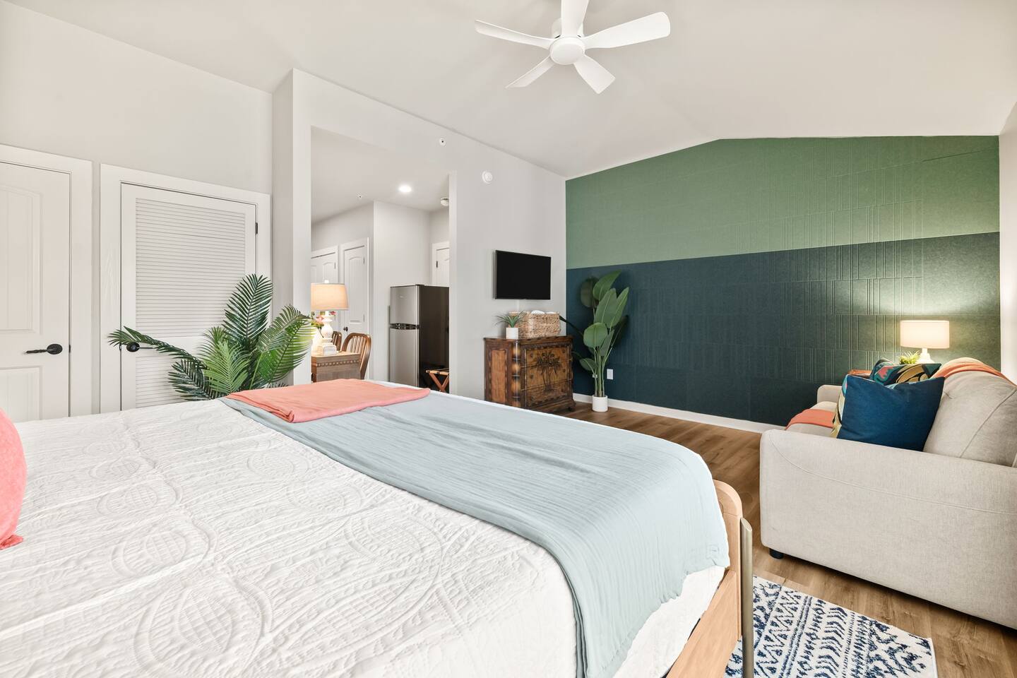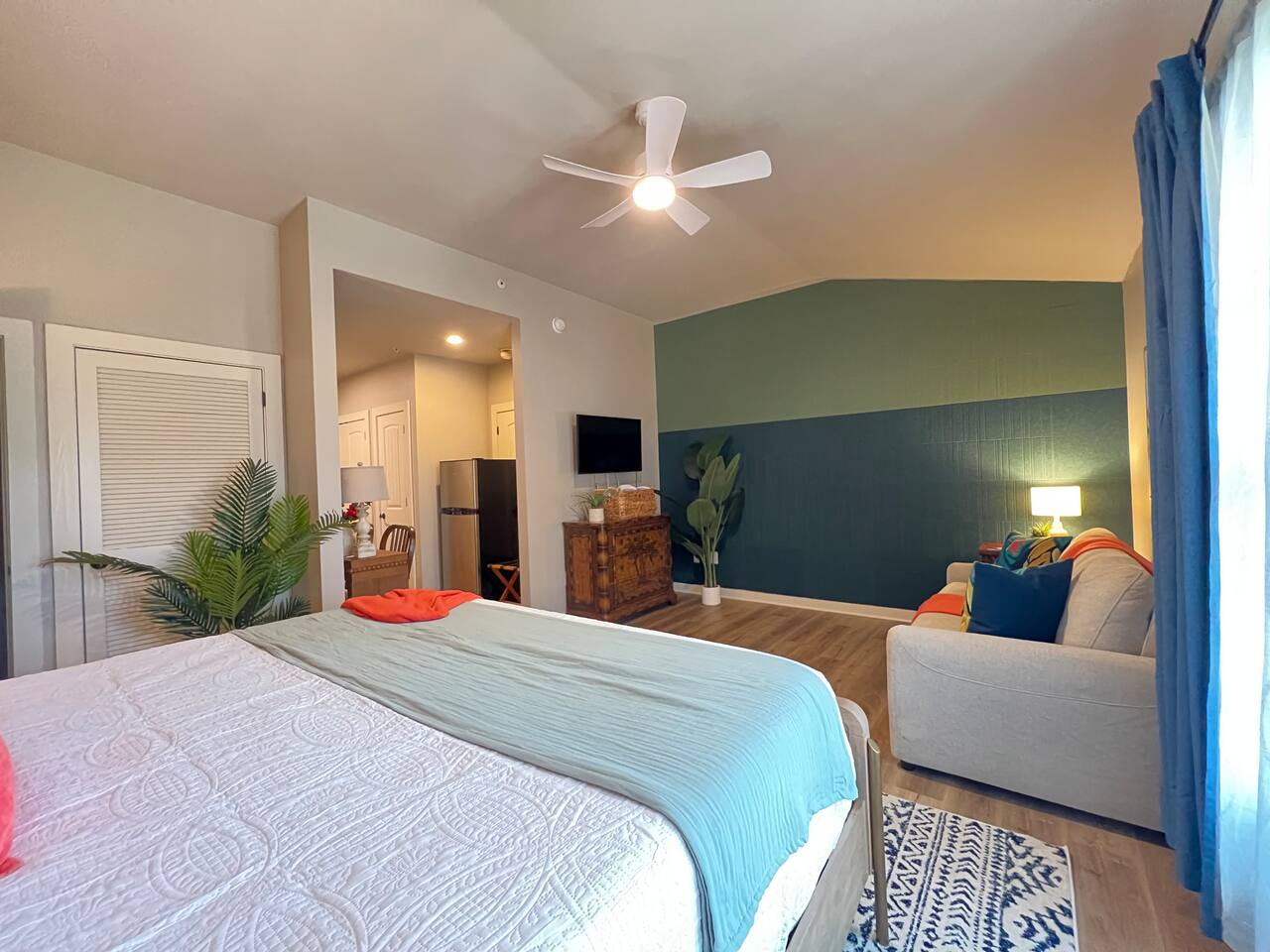 Stay in an immaculate, designer tropical studio within a secure, gated resort community with a 24/7 guard gate. This bright retreat sleeps 4 with a king bed and queen sofa bed (Pack ’n Play available). The open layout includes a fully stocked kitchenette with essentials for easy meals or morning coffee. Natural light and a tropical design create a relaxing vibe, while pool views add to the resort experience. In-Unit Washer/Dryer Combo – perfect for longer stays; travel light and stay fresh. 🏝 Resort Amenities · 3 Sparkling pools (resort-style pool, Olympic & zero-entry) · On-site pickleball courts and nearby King & Bear Golf Course · Clubhouse & tropical walking paths · Pet-friendly community for your four-legged companions · Secure, gated community with 24/7 guard gate 🌆 Location Highlights Just 30 minutes to Historic St. Augustine, where you can explore cobblestone streets, Spanish architecture, vibrant dining, and sandy beaches. The perfect balance of history, relaxation, and adventure. 🌞 Perfect For Ideal for couples, solo travelers, small families or pet-friendly escapes, this studio offers comfort, convenience, and all the perks of a resort stay.